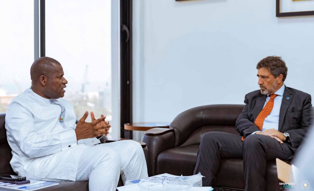 En marge de cette audience, Ismaël Nabé a procédé à une remise symbolique d’une copie du programme Simandou 2040 ainsi que du rapport du Quatrième Recensement Général de la Population et de l’Habitation (RGPH‑4) au coordinateur résident des Nations Unies.