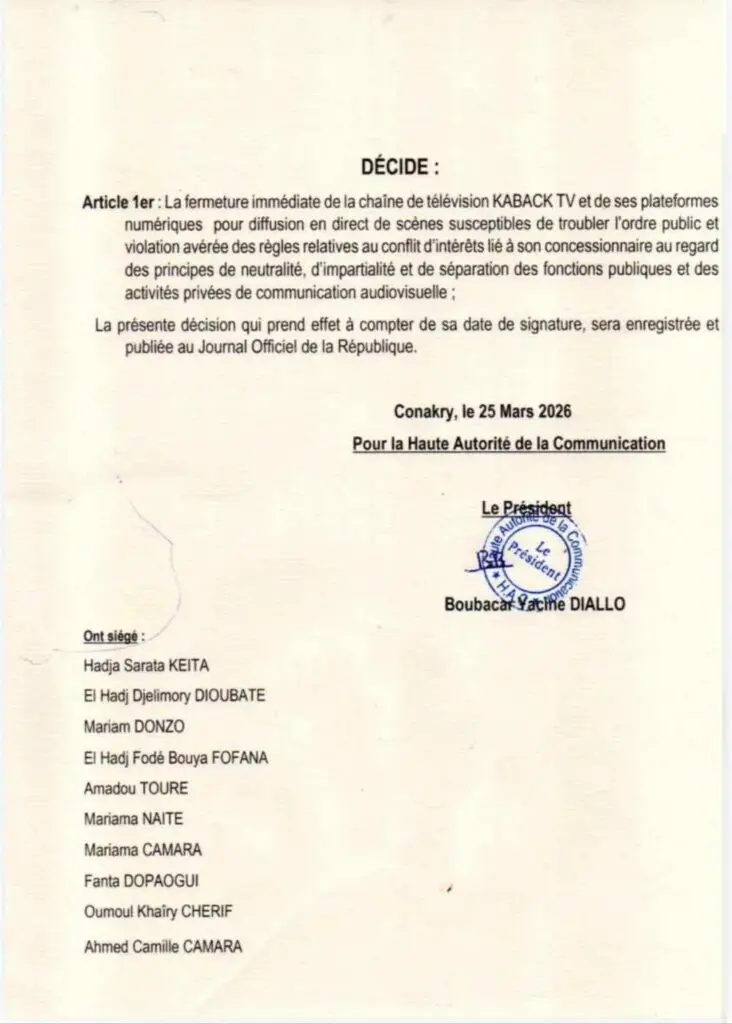 Pour l’heure, aucune réaction officielle des responsables de Kaback TV n’a été enregistrée. Cette décision, aux conséquences lourdes, soulève déjà des interrogations sur l’équilibre entre régulation des médias et liberté de la presse dans le pays.